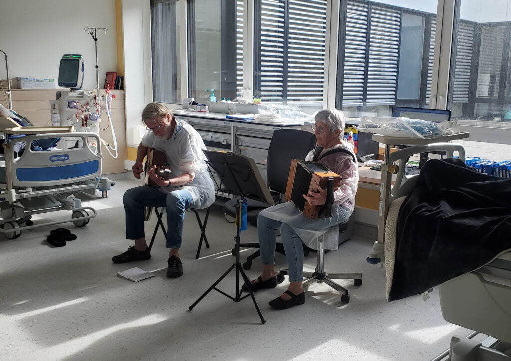 Les musiciens de La Bande à Pablo ont animés le service d’hémodialyse grâce à leurs guitare et accordéon