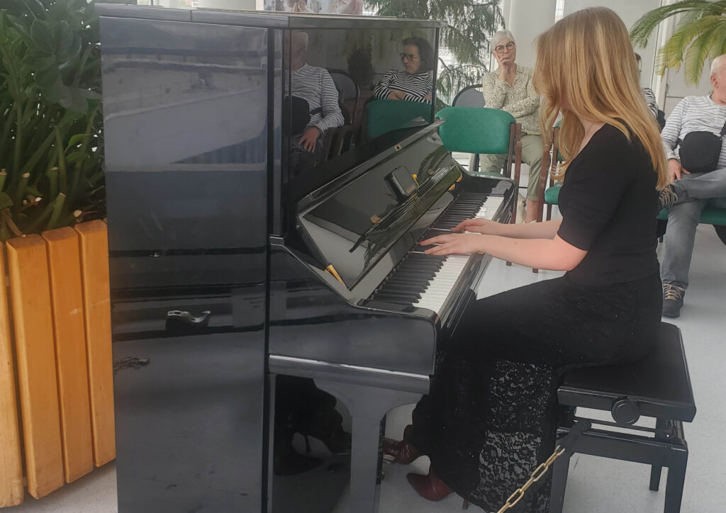 Léna Haudecoeur, étudiante infirmière à l’IFSI de notre hôpital, à offert aux patients, soignants, familles et grand public un concert reprenant les classiques de la pop culture française et internationale.