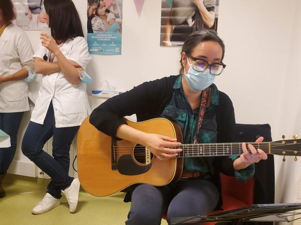 A l’occasion du 48h du peau à peau en réanimation-néonatale, Lola Baie à accompagné le petit déjeuner offert aux parents avec sa guitare et sa voix.