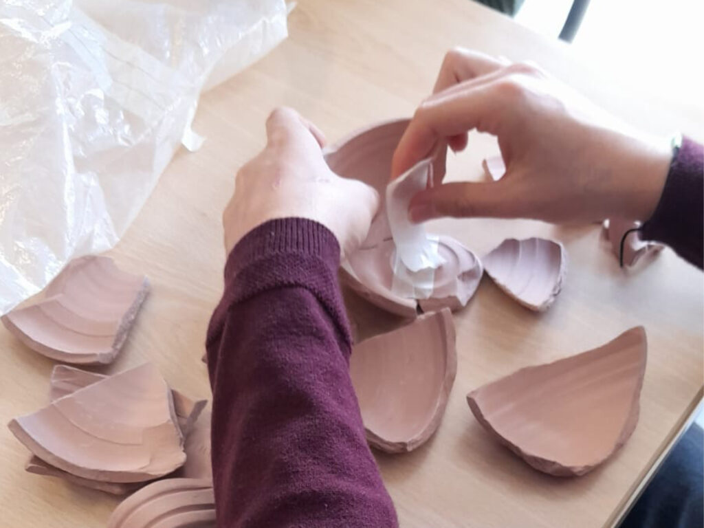 Martine Longuin, médiatrice aux musées du Mans, a amené les enfants à trier des tessons de céramiques afin de les reconstituer. Après une étude approfondie, ils ont formulé des hypothèses quant à leur usage.