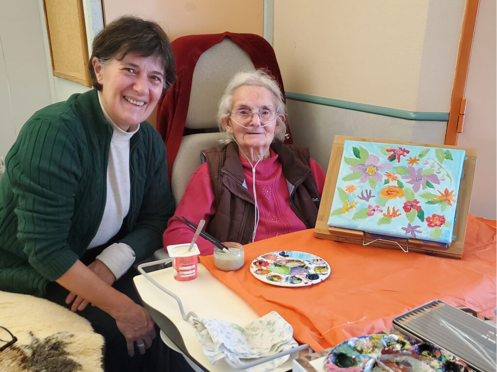 Le projet « je suis ta main » amène le résident à construire ensemble avec l’artiste un tableau. Le résident exprime le thème et l’artiste l’aide à le dessiner puis le peindre. Le tableau est ensuite accroché dans la chambre et peut devenir un sujet d’échange avec les soignants et les familles.